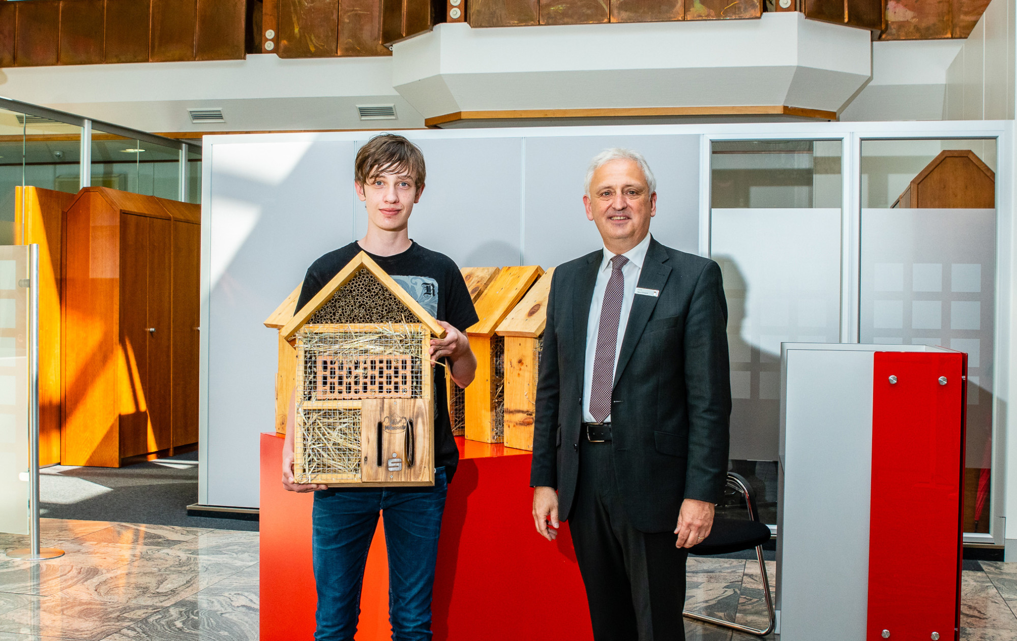 Gewinnerinnen und Gewinner bekamen Insektenhotels der Sparkasse Vest Recklinghausen.
