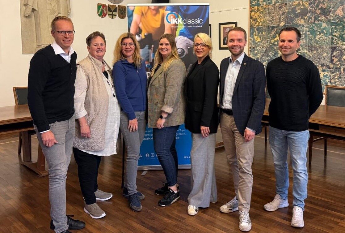 Nun kamen im Waltroper Rathaus Stefanie Müller und Martin Pichocki (IKK classic), Frank Adamski (eco-partner) sowie die Projektverantwortliche bei der Stadt Waltrop, Melissa Neumann, die stellvertretende Projektverantwortliche, Yvonne Kaller, und Pressesprecherin Tamina Forytta zusammen, um die nächsten Schritte abzustecken.