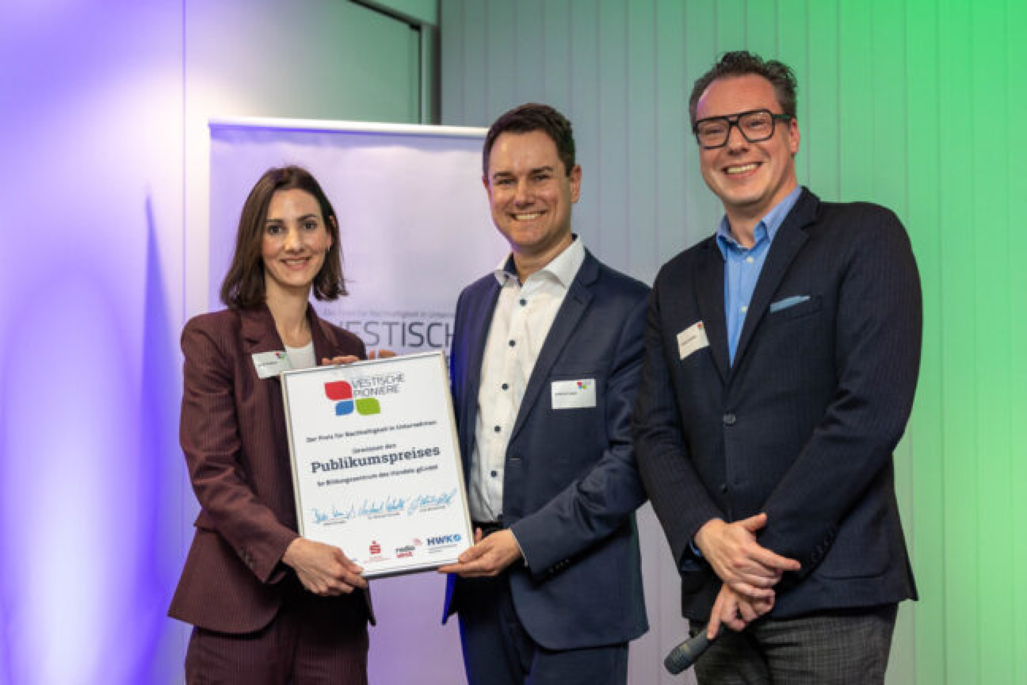 Der Publikumspreis geht in diesem Jahr an Bildungszentrum des Handels in Recklinghausen. Das Bildungszentrum bietet praxisnahe Bildungs- und Weiterbildungsangebote für Jugendliche und Erwachsene. Mit dem Angebot werden fachliche Kompetenzen gefördert und der Wirtschaftsstandort Recklinghausen nachhaltig gestärkt. Mit 1.360 Stimmen konnte es sich gegen seine Mitkonkurrenten um den Publikumspreis durchsetzen.